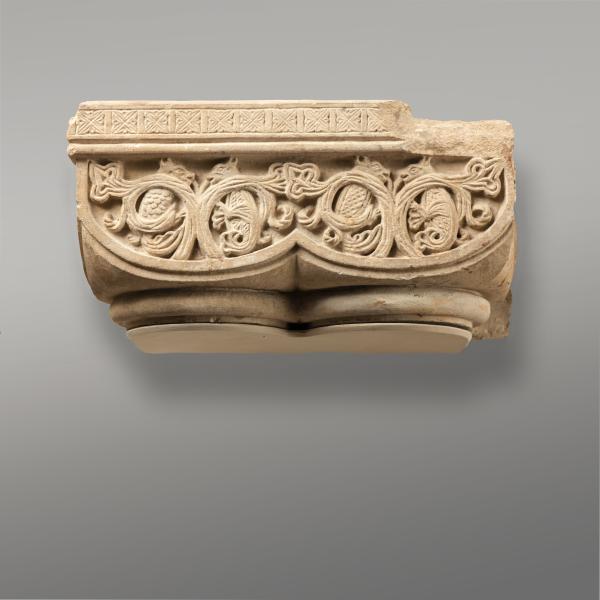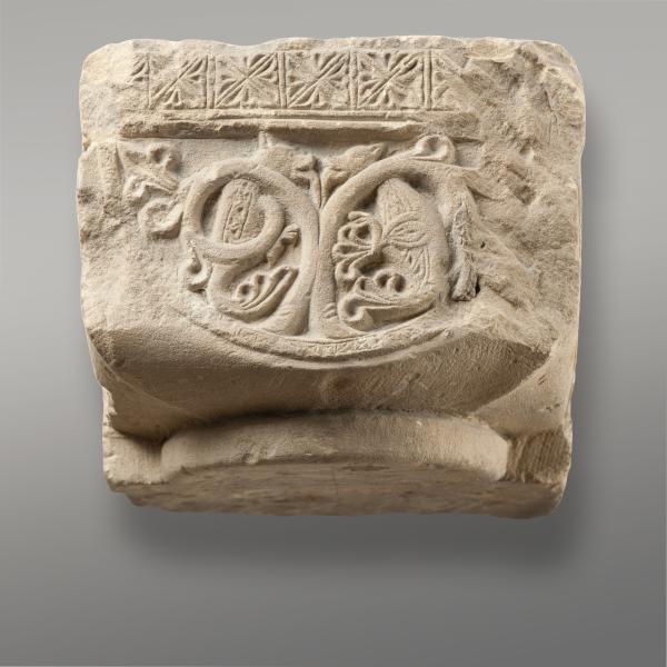Pflanzen- und Tierdekore sind ein besonderes Kennzeichen der romanischen Zeit. In Kirchen lässt sich dabei gut beobachten wie viele unterschiedliche Motive es gab. Dies wird auch bei unseren Objekten sichtbar: Das eine Kapitell zeigt dabei wieder das uns schon bekannte Motiv der Hundeköpfe und Pflanzranken. Das zweite hingegen greift nur das Rankenmotiv auf und wird ergänzt durch kleine menschliche Köpfe, die auf uns herabblicken. Dieser Formenreichtum setzt sich im Außenbereich der Kirche fort: Gehen Sie nach Ihrem Besuch in der Stiftskammer einmal nach draußen zum Kreuzgang und schauen sich dort die vielen, verschiedenen Kapitelle an. Sie werden staunen, wie einfallsreich die Steinmetze der romanischen Zeit waren!
