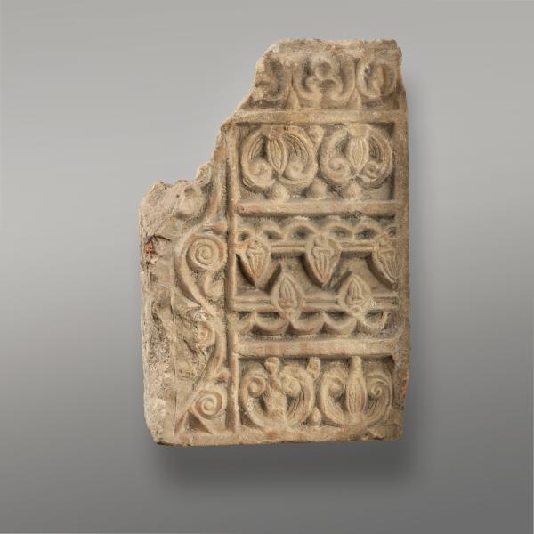 Zur gleichen Zeit wie die Kapitelle entstand das sogenannte beidseitig benutzte Werkstück. Es ist reich verziert mit Pflanzranken auf der einen und mit einer männlichen Büste auf der anderen Seite. Über seine ursprüngliche Funktion gehen die Meinungen auseinander. Demnach könnte es sich entweder um ein dekoratives Element einer Portalanlage handeln oder um das Fragment einer Chorschranke.