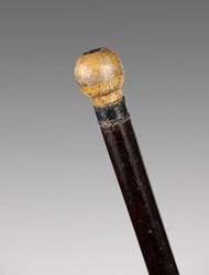 In der Tischvitrine vor Ihnen, relativ unscheinbar, zwischen einer Vielzahl anderer Objekte, sehen Sie einen langen, schwarzen Stab liegen. Während der rund 120 cm lange Schaft aus Holz gefertigt wurde, besteht der helle Knauf aus Horn. Das andere Ende weist eine Spitze aus Metall auf, ähnlich wie bei älteren Gehstöcken.